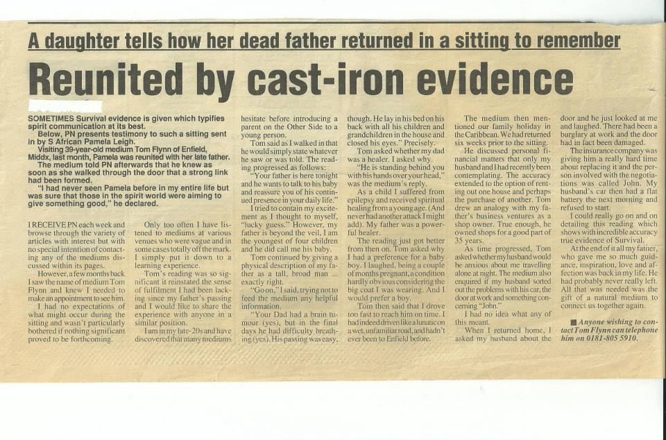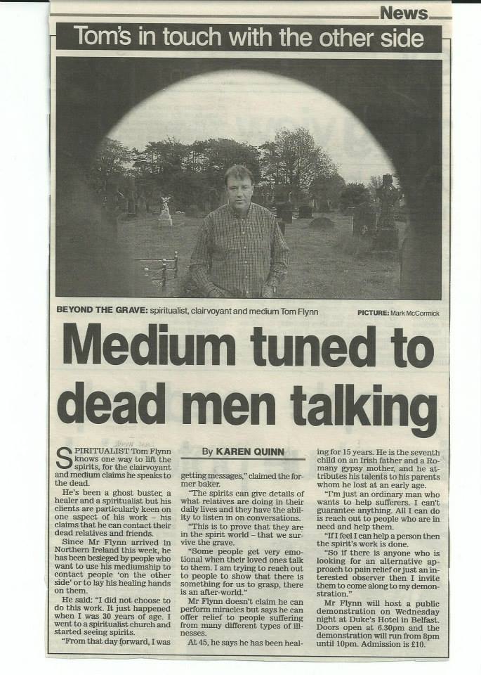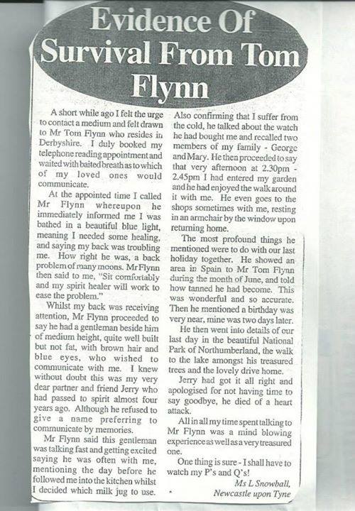 Here you can view clippings that Tom has kept in a box for years and years. Combined with these old clippings, and the new testimonials we collect currently, Tom has not lost his touch. He continues to amaze us with his mediumship messages and his healing.